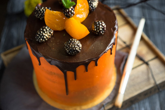 Упрощает процесс вращающаяся тарелка, а если у вас есть помощники, то в вашем распоряжении 4 руки! Распределите глазурь по краям движениями вверх и вниз. Даже не обязательно покрывать глазурью весь торт, особенно если под рукой для украшения у вас есть свежие фрукты и ягоды. Яркие летние цвета аппетитно выглядят рядом с шоколадом.