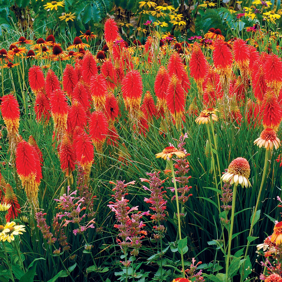 В ландшафтном дизайне книфофию часто сочетают с другими многолетниками: