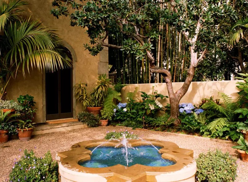 Редко какой восточный ландшафтный дизайн обходится без небольшого искусственного пруда или маленького источника воды. А как мы знаем, все европейские и американские ландшафтные дизайнеры, да и наши с вами соотечественники, черпают вдохновение у основоположников мастерства привнесения красоты и гармонии в окружающую дом территорию – восточных народов.