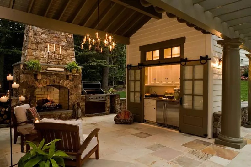 - зона патио обязательно должна быть дополнена мангалом, ведь ничего нет вкуснее еды, приготовленной на свежем воздухе. В последнее время дизайнеры для оформления зоны отдыха предлагают установить настоящий очаг или восточную печь тандыр;