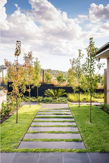 Перед вами пример оформления садовой дорожки в популярном ныне стиле steppingstones. Элементы таких троп будто представляют собой места для установки стопы – вы двигаетесь по большим камням или спилам бревен, вкопанных в землю. Один из практичных и при этом экономичных способов оформления такой дорожки – изготовление плиток из бетона различной формы. Красивую, современную и практичную дорожку можно сделать своими силами.