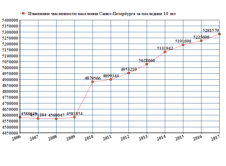 Общая численность населения Санкт-Петербурга на 2018-2019 год