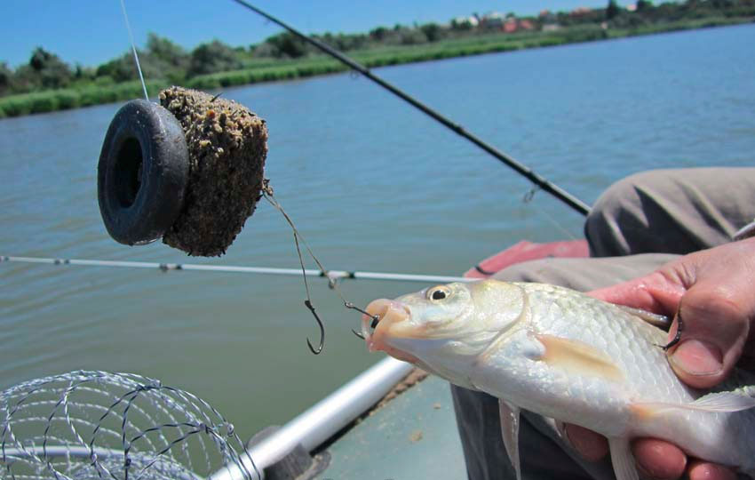 Рыба, привлеченная запахом, приплывает на место ловли, находит корм и всасывает кусочек жмыха вместе с крючком. В этот момент можно смело подсекать, так как добыча уже зацепилась цевьем за жабры.