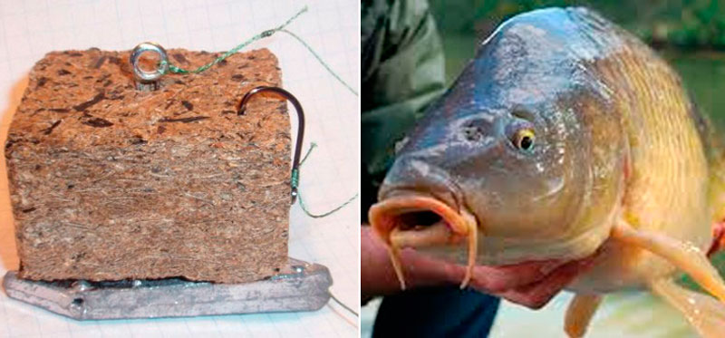 Сазан очень любит вкус и запах макухи, поэтому эта приманка считается эффективной для ловли такой рыбы. Ловить его на жмых можно в любое время сезона. Начинать охоту можно уже с началом весны, когда вода только начинает прогреваться рыба выходит из укрытий в поисках пропитания.