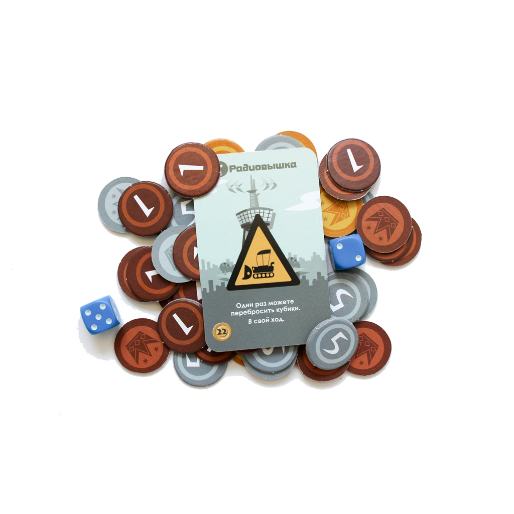 Ну ладно, в игре не только карты, есть ещё пара кубиков и кучка денежек. =)