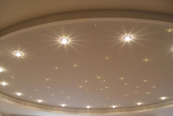 Монтировать точечное освещение можно на подвесные потолки любого типа. Установка точечных светильников в гипсокартон является наиболее простым и надежным вариантом, однако процесс монтажа никак не отличается и в случае с обшивкой потолка пластиковыми, алюминиевыми полосами или МДФ, за несколькими оговорками.