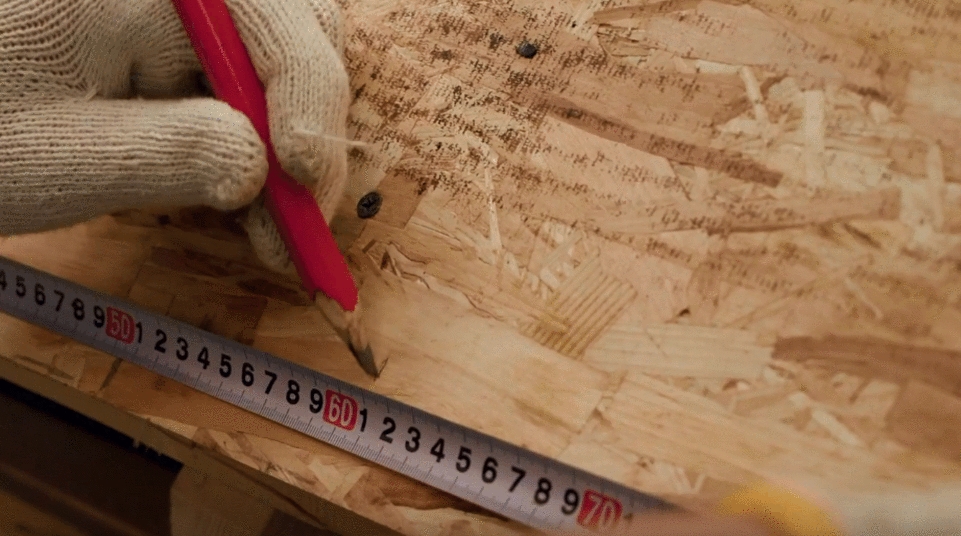 - Шаг 1. На самой доске, которая была установлена предварительно, отметьте лазером горизонтальную линию в самом высоком месте желоба.