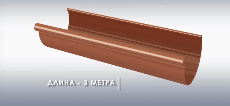 - Желоба. Купить их надо метражом согласно длинам карнизов. Линейному температурному расширению желобов ничто не будет мешать, потому положенных на компенсацию расширения 2,5 мм с каждого края можно не учитывать.