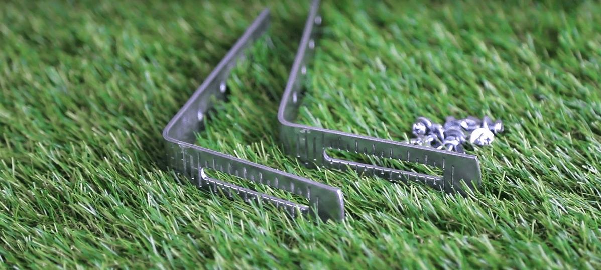 - Выполним предварительную примерку. Крайний держатель приложим к месту предстоящей установки. Заодно установим непосредственно на скат правило или обычную рейку. Между правилом и загнутой частью крюка должно остаться 2 см.