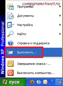 Рис. 9. Где находится команда Выполнить для Windows XP