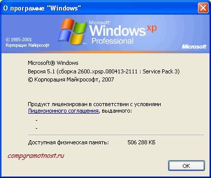 1.4. Windows XP и команда winver