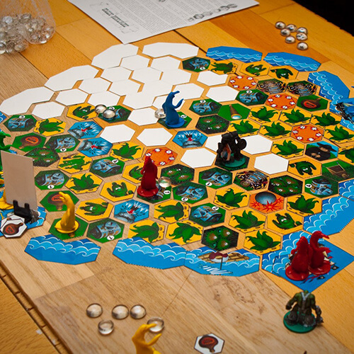 Эта занимательная игра подойдет тем, кто любит стратегические и экономические игры. Задача проста – есть игровое поле, которое собирается с помощью фишек. В зависимости от того, на какую местность попала фишка, она становится представителем разных фракций.