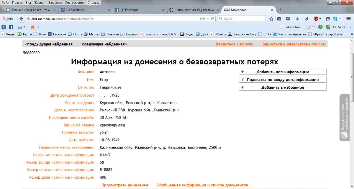 Если на нем зарегистрироваться, то можно получить консультацию совершенно незнакомых историков, специалистов, всех, кто увлекается поиском, работников военкоматов.