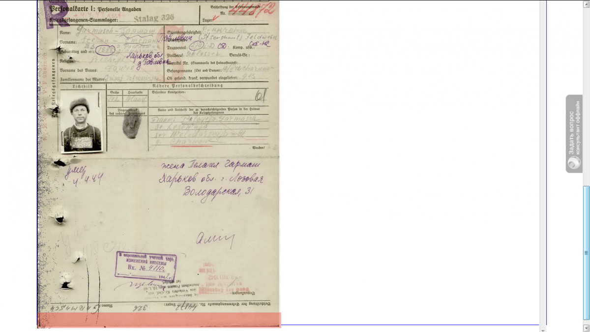 Здесь очень важно различать причину ошибки. Если ошибка допущена при переносе информации с документа в базу данных, неважно, по причине плохой разборчивости текста или по какой-то другой, надо написать в службу поддержки — корпорацию «ЭЛАР» — через обратную связь на сайте или напрямую по адресу [email protected] , указав номер записи и допущенную ошибку. Если же ошибка допущена в самом документе, в «ЭЛАР» писать бесполезно: поскольку ОБД — банк архивных документов, в записи воспроизводится именно то, что указано в документе. Также не надо присылать в «ЭЛАР» дополнительную информацию — точную дату рождения и другие данные, не отраженные в публикуемом документе. Однако имеется возможность самостоятельно ввести уточнение к записи. Здесь мы возвращаемся к блоку «Дополнительная информация», о котором говорили, обсуждая необходимость регистрации на сайте. На экранной форме, отображающей информацию о человеке, имеется кнопка, на которой написано «Добавить доп. информацию», если дополнительной информации к записи нет, или «Доп. информация», если она имеется. Пользователь, зарегистрированный на сайте, может ввести в этот раздел любой исправляющий или уточняющий текст, образы документов, ссылки на интернет-ресурсы. После просмотра введенной информации модератором она становится общедоступной. Таким образом, официальная часть сайта, связанная с архивными документами, отделена от дополнительной, заполняемой пользователями. Ну а если требуется официально исправить неточности, допущенные в документе, например, исправить фамилию, чтобы человек был учтен под правильной фамилией, надо обращаться непосредственно в архив, в котором хранится документ, прилагая подтверждающие документы, и лучше — через военкомат. Тогда архив на основании предъявленных документов создаст новый документ об изменениях, документ попадет в архивное дело и впоследствии поступит в ОБД.
