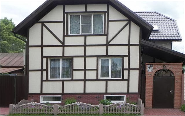 Отделка под фахверк требует одинакового расположения элементов по фасаду