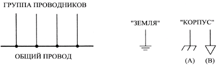 Что касается графического обозначения всех элементов, используемых на схеме, этот обзор мы предоставим в виде таблиц, в которых изделия будут сгруппированы по назначению.