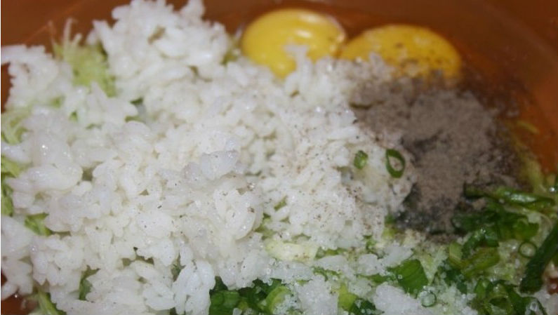 - Проверяем, не много ли сока дали кабачки? Сливаем лишнее, если кабачки все еще сочные – присыпаем их манкой и вмешиваем ее в тесто.