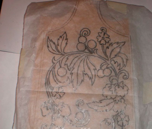 Второй прием – «под фон»:сначаларисуются контуры узора, затем покрываетсяцветом фон и после этого оставшийся незакрашенный узор расписывается краской.