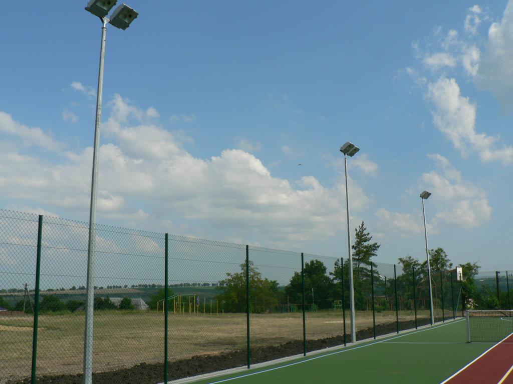 — Для баскетбольных и волейбольных площадок. Высота мачт может варьироваться от 10 до 15 метров.