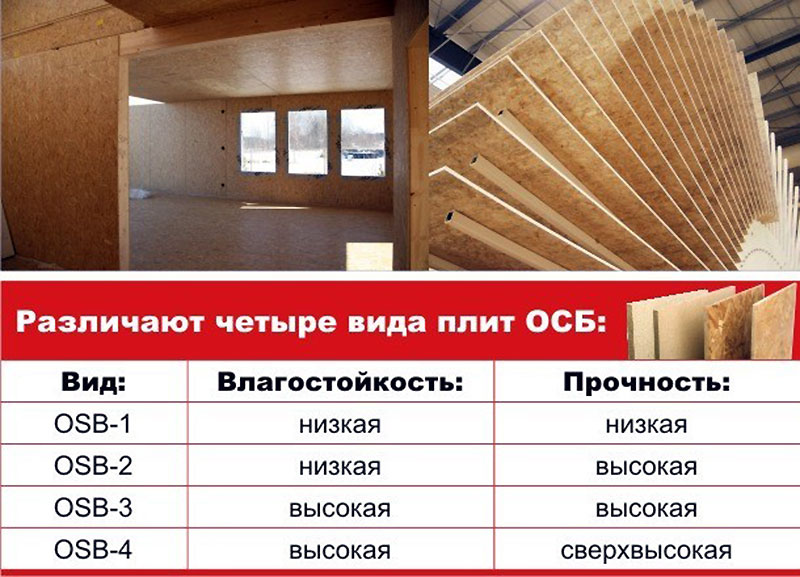 • ОСП-4 – материал, способный выдерживать значительную механическую нагрузку и применяется в условиях с любой влажностью.