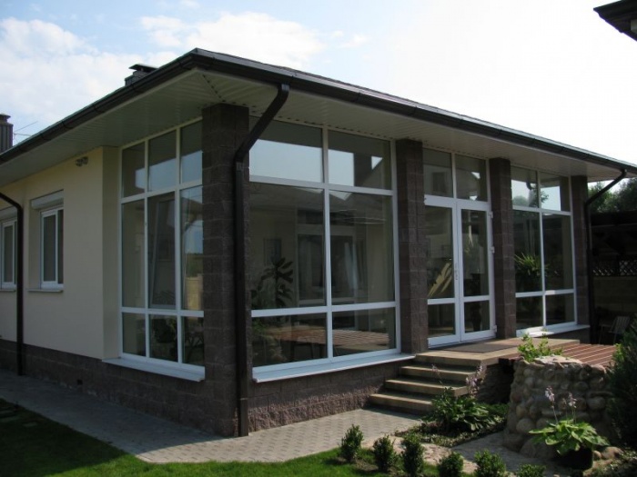 • совмещенная веранда – входить в дом нужно через веранду (общий главный вход). Или другой вариант совмещенной веранды, тогда попасть в это помещение можно из другой комнаты. Выйти на улицу через веранду не получится.