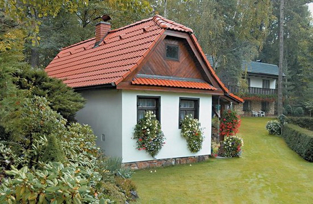 Не нужно забывать, что дачный участок должен подчеркивать красоту будущей конструкции, поэтому будет уместно выложить дорожки из гравия либо плитки, посадить цветы и многолетние кустарники. А при наличии финансовых возможностей соорудить искусственный пруд.