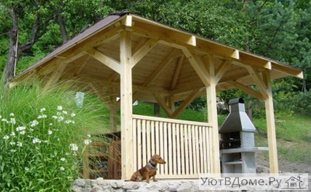 Для сезонной конструкции достаточно навеса и бетонированной площадки