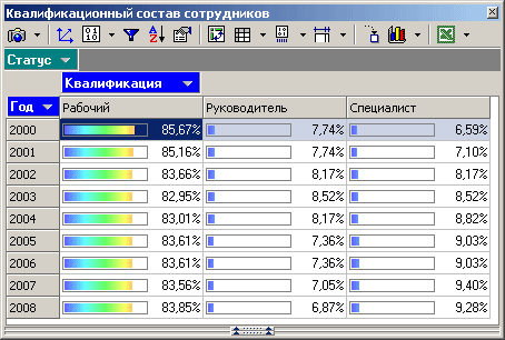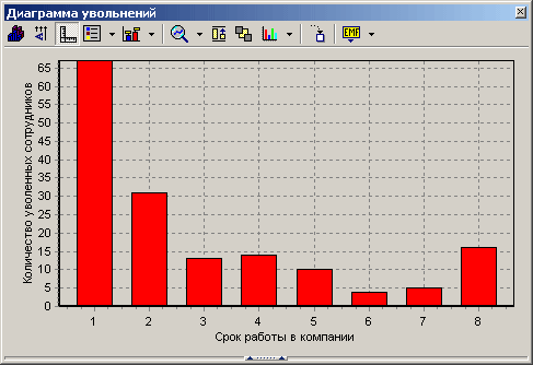 Такой анализ поможет руководителю выявить должности, на которых проявляется наибольшая текучесть. Аналогично можно оценить, сотрудники какого возраста и с какой квалификацией чаще других покидают компанию. Всё это позволит принять своевременные меры по удержанию наиболее ценных служащих.