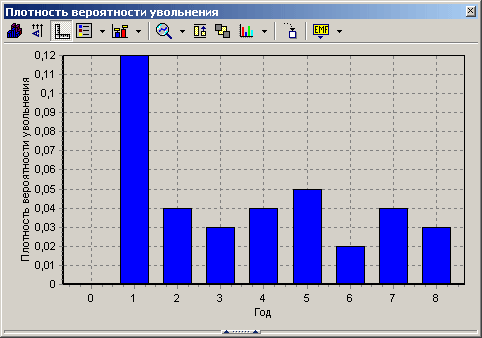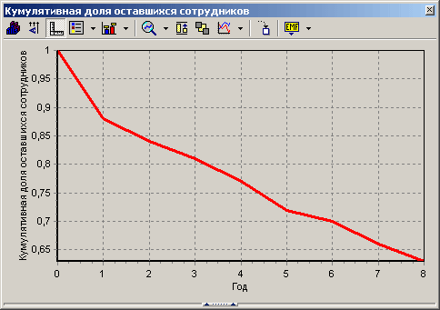 Для прогноза поведения сотрудника используется параметр интенсивности увольнений или функция риска, которая показывает вероятность того, что служащий уволится в следующем отчетном периоде при условии, что в начале он работал в компании.