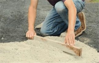Выберем слой грунта на глубину примерно 10 см, затем засыплем слой песка 5 см и хорошенько его утрамбуем.