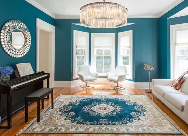 В наше время мода говорит, что не стоит покупать ковёр, который займёт всю комнату от стены до стены — этак мы не отличим его от коврового покрытия. А если он меньше размера комнаты, у нас появляется некоторая свобода в его расположении. Кстати, никто не запрещает расстилать в комнате больше одного ковра.