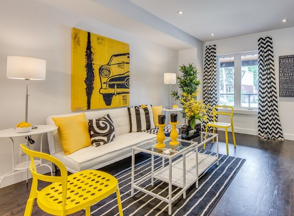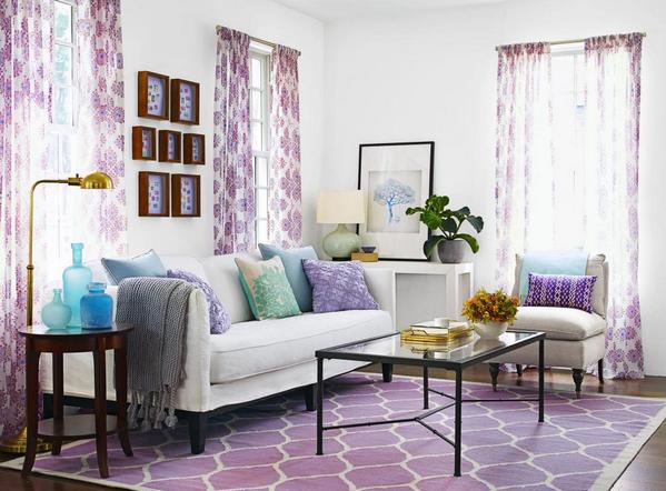 5. Под уже имеющиеся в интерьере цветовые пятна. Например, под цвет торшера, картины, панно, пуфа и т.д.