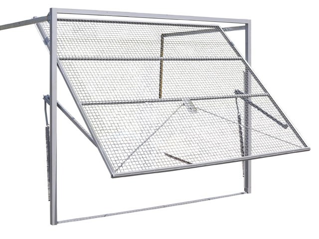 Плоскость откидных ворот совершает движение, напоминающее обкатывание условной цилиндрической поверхности большого радиуса. Чтобы облегчить подъем стальной или деревянной панели откидных ворот, в конструкции используются компенсационные пружины или противовесы в виде подвешенного на тросах груза.