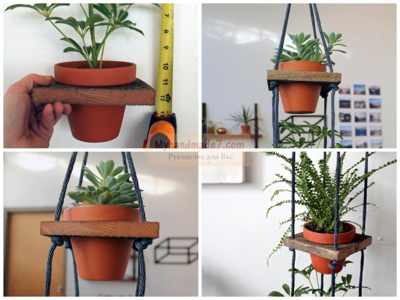 Или вот такая идея подвешивания кашпо, ее смогут осуществить даже те, кто не умеет :