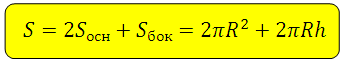 Площадь полной поверхности цилиндра: