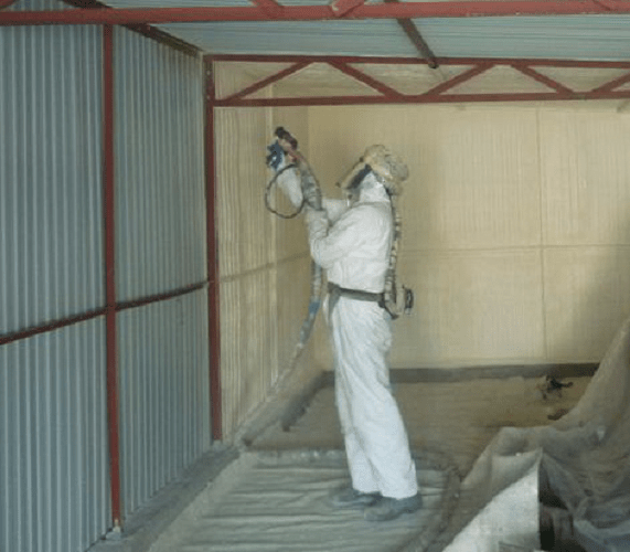 Внутренняя отделка и утепление гаража из листов профнастила выполняется по стандартной схеме. На внутреннюю поверхность профнастила пеной из ППУ крепится полиэтиленовая пленка и нашивается обрешетка из деревянной рейки толщиной 4- 5 см. В результате между листом профнастила и пленкой образуется небольшой вентзазор в 5- 10 мм толщиной, обеспечивающий скатывание и удаление конденсата.
