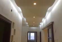 - Сделали подвесной потолок в прихожей из гипсокартона. Все ровненько, просто чудесно! Покрасили в бежевый цвет, так красивее, светлее и вообще, прихожая стала визуально больше, чем до ремонта, несмотря на то, что потолок стал немного ниже! Теперь не скоро будем что-то делать, полагаем, что лет через десять, да и то, скорее всего, это будет простая покраска.