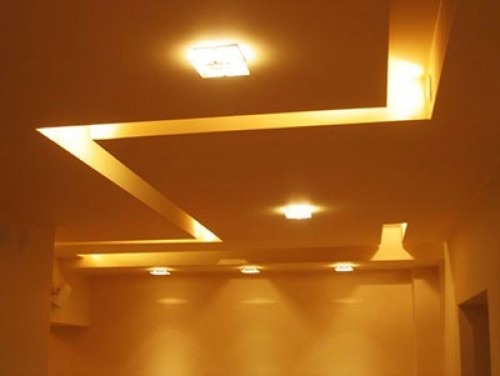 Освещение комнаты можно сделать традиционным. То есть повесить посреди комнаты люстру. Но такой подход считается немного устаревшим. Исходя из этого, намного лучше применить современные светильники, которые легко встраиваются в конструкцию потолка. С помощью таких точечных источников света можно создать правильный , придать помещению больший объем и дополнительную привлекательность. К тому же, подобные светильники могут работать в нескольких цветах. В зависимости от цвета свечения и места размещения, изменяется внешний вид потолочной конструкции.