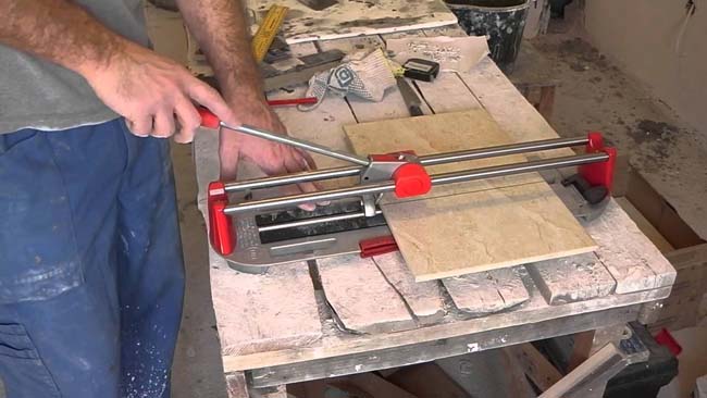 2. Ручной плиткорез – достаточно удобный инструмент, но уже требующий большей ловкости от работника.