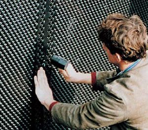 - во влажный битум укладываем штукатурно-малярную или армированную сетку с ячейками 2х2 мм;