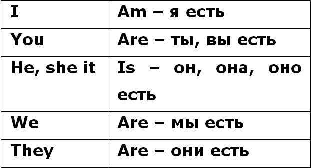 Теперь давайте выучим, как изменяется (спрягается) глагол to be в настоящем времени. Как было сказано выше, в русском языке предложения типа «я ученик, она доктор, мы рабочие» образуются без глагола-сказуемого. Но чтобы перевести эти предложения на английский язык, нужно поставить соответствующую форму to be после подлежащего – “I am a pupil, she is a doctor, we are workers”.