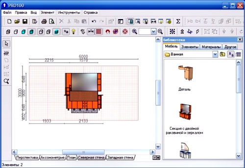 - возможность пользоваться как готовыми модулями (в программе уже «забиты» стандартные образцы модулей, используемых в производстве корпусной мебели , окон, дверей и т.д.), так и строить свои собственные нестандартные интерьерные детали и сохранять их в каталоги библиотек (Рис. 2);