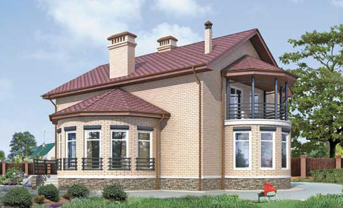 - Проекты 2-х этажных домов с овальным или прямоугольным эркером из газобетона, из пеноблоков, из газосиликатных блоков. Эти экономичные материалы широко используются в современном строительстве. Образец такого коттеджа показан под № 48-31G .