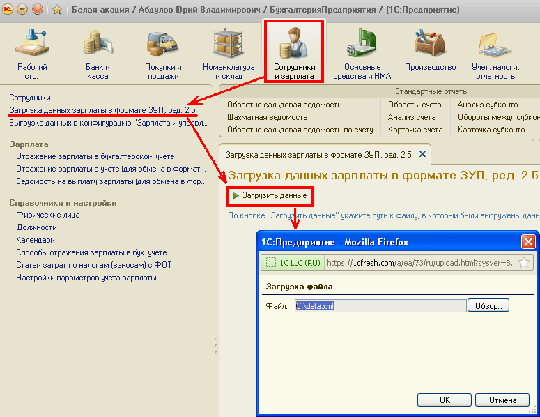 Для загрузки данных о заработной плате выполните следующие действия: