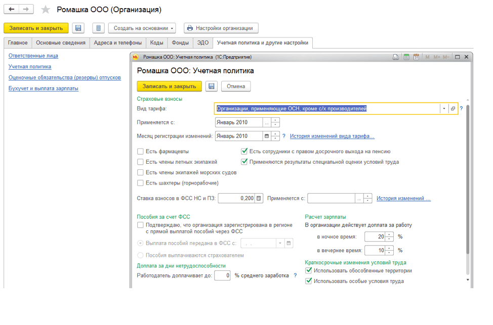 Рис. 11. Настройка «Учетной политики» организации