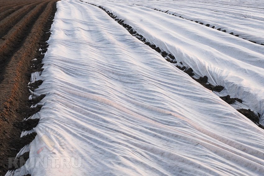 Этот способ уже давно дает самые положительные результаты. Спанбонд — это плотное, но достаточно легкое волокно, которое способно выдержать морозы до 5 градусов. Практически до самого цветения картофель находится под белым агроволокном. Поливать можно как капельным способом, так и дождевальным. Через него свободно поступает воздух и влага, но не уходит тепло. После того как погода стабилизируется и агроволокно снимается с участка, оно легко подвергается стирке, просушке и хранится в течение 5-8 лет.