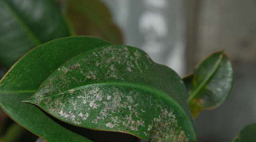 Появление на фикусе Бенджамина липких листьев, пожелтение их и деформирование — свидетельство присутствия тли. Липкий белый налет, похожий на муку — пища для сажистого грибка, развитие которого почти всегда приводит к гибели всего куста.