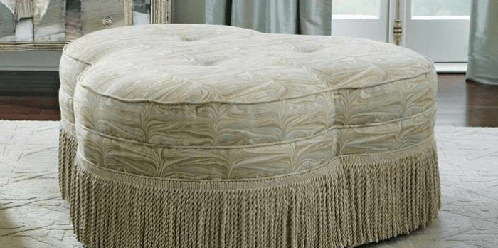 Описанная выше технология позволяет сконструировать пуфик с идеально ровной поверхностью. И если длинный и широкий он будет выглядеть строго и аккуратно, то маленький будет смотреться пресно и дешево. Подумайте о каретной стяжке – это один из самых простых и выгодных вариантов украсить «унылую» поверхность.