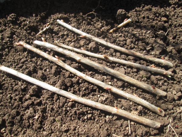 «Осенние» черенки можно той же осенью до заморозков прикопать в грунт в положении почти «лёжа» и замульчировать. Если они удачно перезимуют, то весной тронутся в рост совершенно самостоятельно.