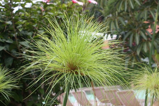 Циперус папирус, он же сыть папирусная – многолетнее растение из болотистых местностей Египта и Эфиопии. В естественных условиях его высота может составлять до 3 метров. Стебли прямые и очень прочные. Заканчиваются они пышной розеткой из длинных свисающих листьев. Декоративные качества растения очень высокие.